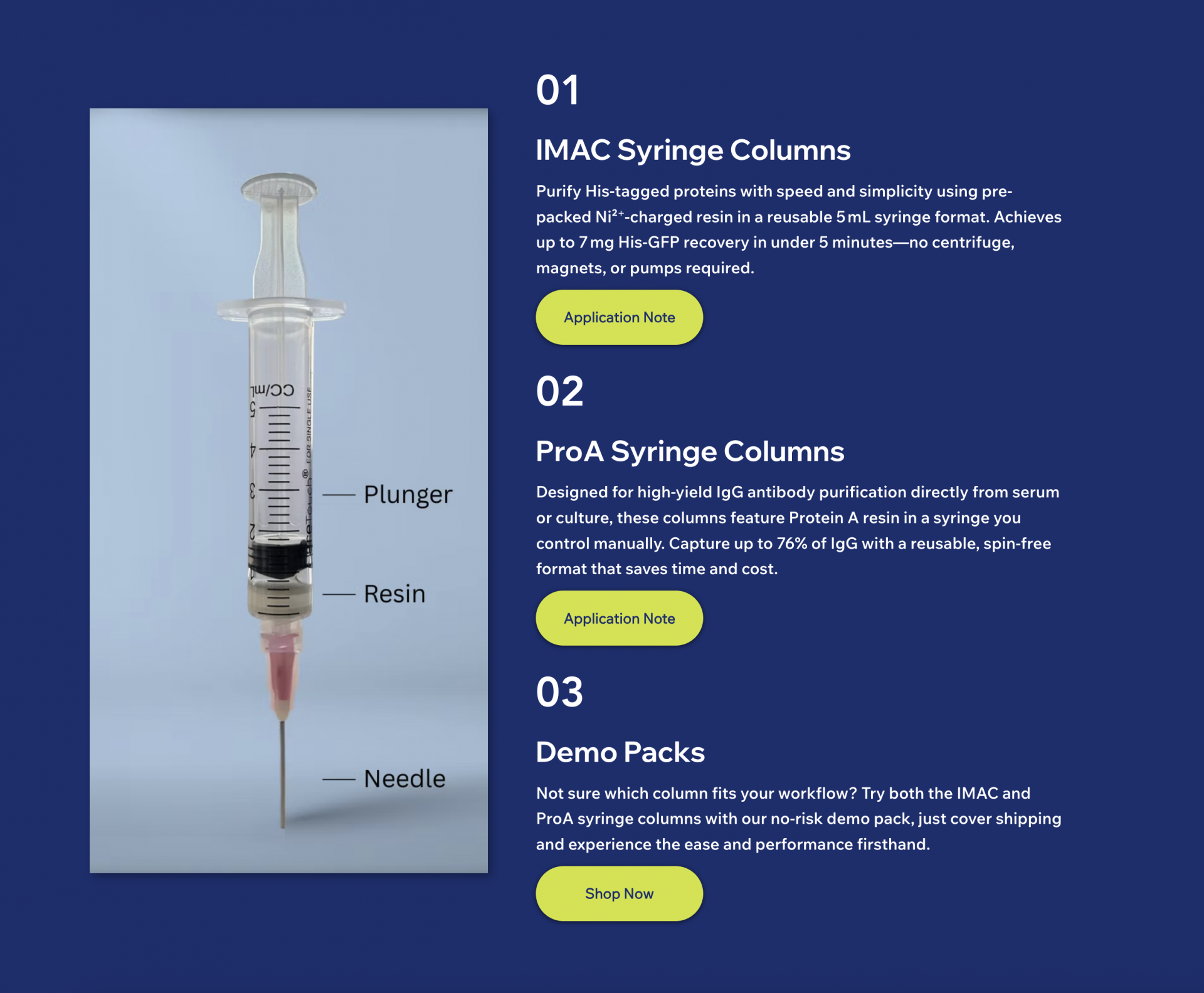 Protein A & IMAC Syringe Columns * Demo ? ! *